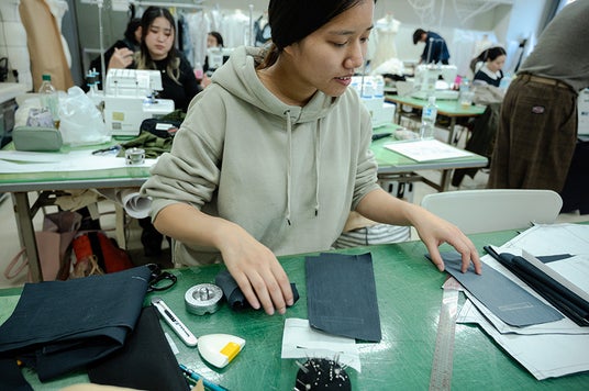 4年間の学びで培った高い専門性と「高度専門士」の称号を強みに、企画・デザイン、パターン、縫製などの技術職から、リーダー的役割を担う総合職まで、幅広い職種での活躍を目指します。 平面から立体まで多角的な知識と技術を習得し、4年次にはその集大成として、6体以上のルックで構成される「プライベートコレクション」を制作・発表。また、在学中の4年間を通じて企業やアーティストとの産学連携を積極的に行い、商品企画や共同制作を経験することで、社会で即戦力となる技術とコミュニケーション能力を養います。