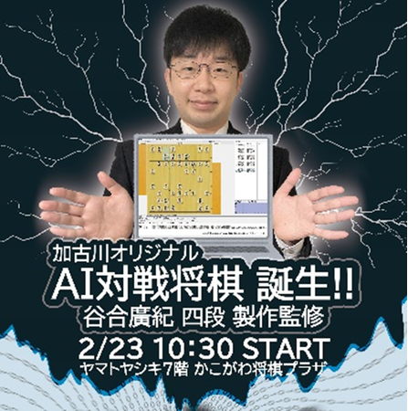 兵庫県加古川市(市長 岡田 康裕)の一般財団法人加古川市ウェルネス協会は、JR加古川駅南の商業施設「ヤマトヤシキ」(兵庫県加古川市加古川町篠原町21-8)の7階にある「かこがわ将棋プラザ」に、この度、谷合廣紀四段が加古川市のために製作監修したオリジナルAI将棋ソフトを導入しました。