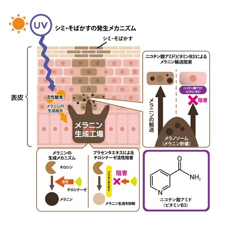 【有効成分「プラセンタエキス」「ニコチン酸アミド(ビタミンB3)」がシミ・そばかすを防ぐ理由】