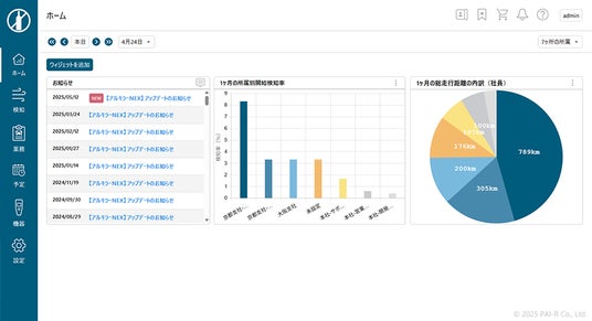 株式会社パイ・アール(本社:大阪市中央区、代表取締役:安田 功)は、白ナンバー向けアルコールチェックシステムでシェアNo.1※ を誇るアルコールチェック管理システム「アルキラーNEX」の管理画面において、新たなホーム画面(ダッシュボード機能)を2025年5月12日より正式リリースいたしました。