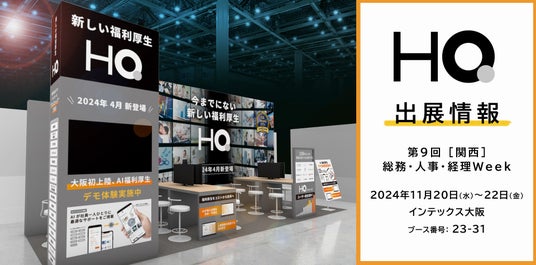 「福利厚生をコストから投資へ」をビジョンに掲げる株式会社HQ(読み:エイチキュー、本社:東京都港区、代表取締役:坂本祥二)は、11月20日(水)~22日(金)の期間にインテックス大阪で開催される【第9回[関西]総務・人事・経理Week】に、2024年4月に提供を開始した国内初・AI活用の福利厚生プラットフォーム「カフェテリアHQ」を出展します。今回の展示会は、HQとして大阪初出展となります。