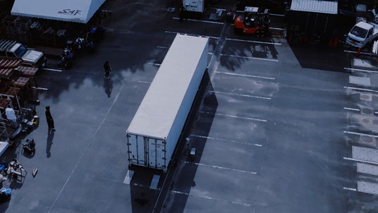 極寒環境の再現には、奥行き11.5m、幅2.3m、高さ2.3mの巨大冷凍コンテナを用意。トラックで搬入、クレーンで釣り上げて検証現場にセットし、冷却スイッチをオンにしたら準備完了、ランドクルーザー“250”をコンテナの中に移動させます。