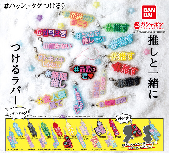 SNSで利用されている「#(ハッシュタグ)」+「推し活ワード」をラバーマスコットやアクリルスタンドとして商品化し、推しを推しまくれるグッズとして発売している人気シリーズです。