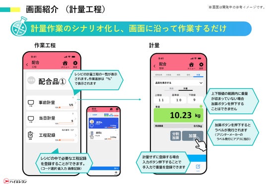- 計量・投入・記録まで一括管理、リアルタイム進行把握