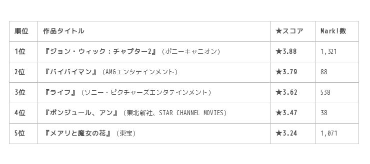 ※ 本ランキングは公開日から7月10日までの★スコアが3.0以上の作品を対象としています。