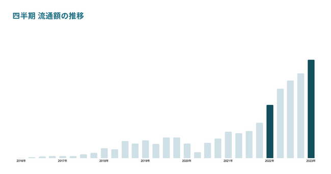 尚、前年同期比では2倍弱、前々年からは約4倍の増加となっており、プラットフォームをご利用いただくユーザーは順調に増加しております。23年1-3月期の成長率は主には下記2点が挙げられます。