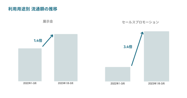 オンライン消費の成長率鈍化の趨勢からオフラインイベントの需要回帰、展示会などイベント利用が前年同期比で1.4倍の増となりました。