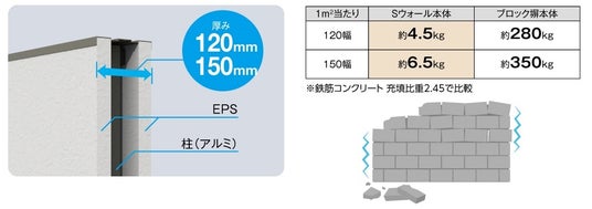本製品は、災害などによりコンクリートブロック塀が倒壊する事故やブロック施工職人の減少および高齢化、また住宅のリフォーム需要が多くなっている業界背景を勘案し、従来のブロック施工より倒壊時の安全性や施工性が優れたアルミ材と発泡材を下地とした軽量の乾式塀です。
