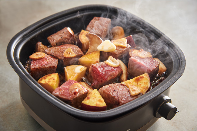 煮る、炊く、蒸す、揚げる、焼くの1台5役はそのままに、四角形状になったことで、食材が並べやすく、混ぜやすくなりました。コンパクトな見た目ながら、普段使いにぴったりの1.3L。白米が2合分炊けるサイズ。「こびりつかない」と、前モデルからも好評のセラミックコーティングを施した「セラミックボウル」は、汚れが落ちやすく割れにくい仕様。また、軽量なのでお皿と同じように洗えてお手入れもカンタンです。付属の「グリルプレート」は、お肉やお魚を焼いても焦げ付きにくいフッ素樹脂加工。手軽に焼肉も楽しめます。料理の一番おいしいタイミングはやはり出来立て。アツアツを食べられる贅沢をテーブルで。