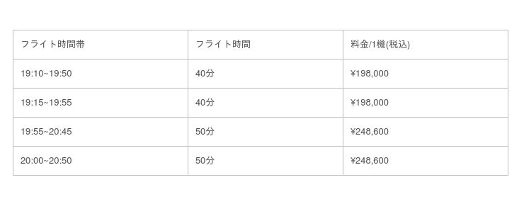 ※ なお花火大会が雨天中止となった場合、フライトは中止および全額返金となります。