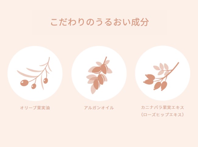 アルガンオイル・・・ビタミンEや不飽和脂肪酸が豊富。保湿することで角層の健やかなバリア機能を保てるよう導きます。