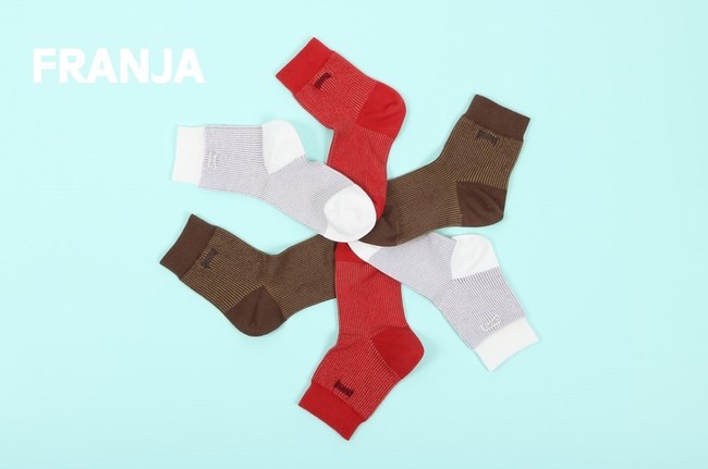FRANJA(フランハ)はスペイン語で「縞模様」という意味で、リブの凹凸でバイカラーを利かした、肌触りの良いハイゲージ編みが特徴のライン。履くとリブが広がってアクセントカラーが見えるデザインに仕上げ、スマートな印象でありながらカンペールのプレイフルなカラーイメージを表現。足首部分は形が馴染むようなフィット感の良いL字ヒールを採用。メンズサイズはレギュラー丈(ふくらはぎ下)、レディースサイズはアンクル丈(足首)での展開。