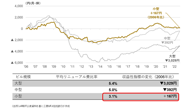 小型ビルはリニューアル費比率が最小だが、収益性の上昇幅は最大
