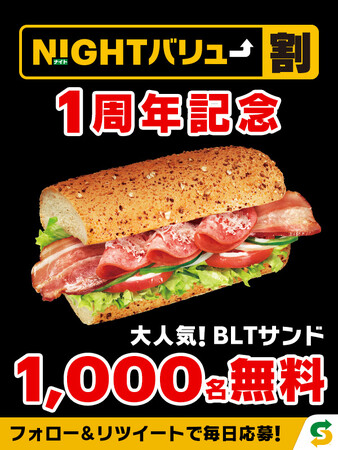 「NIGHTバリュー」の1周年記念キャンペーンを、フォロワー115万人のサブウェイ公式Twitterでも!