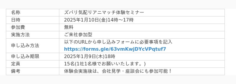この度当社は、2025年1月10日(金)にボードゲーム「ズバリ気配りアニマッチ」の体験セミナーを開催することとなりましたのでお知らせいたします。