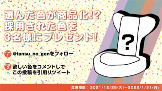 今回新たに展開された新色5色は、2021年12月にタンスのゲン公式SNSで実施したキャンペーンにご参加いただいた2316人のフォロワー様のご投票により採用されたカラーです。(キャンペーンは既に終了しています。)