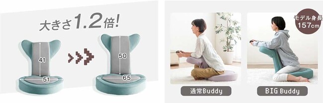 今回リニューアルした”BIG Buddy”は、男性や高身長の方でもゆったり座れるように作られた大きいサイズのモデルになります。