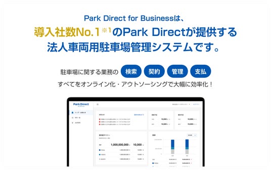 「Park Direct(パークダイレクト)」(https://www.park-direct.jp)は、駐車場の募集から契約業務、契約後の月額使用料の収納代行(賃料保証含む)や顧客管理まですべてをオンラインで実現するモビリティSaaSです。月極駐車場の各種手続き(※2)を全てネット上で完結させ、不動産会社様や借主様の駐車場契約・管理にまつわるムダなコストを大幅に削減します。さらに、駐車場ごとのデータに基づきオンライン/オフラインを問わない様々な集客施策を設計、展開し、月極駐車場の稼働率アップ、オーナー様の収益アップに貢献いたします。