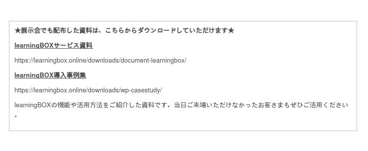 3日間にわたって、eラーニングシステム「learningBOX」の魅力をPR