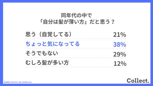 ディーエムソリューションズ株式会社(東証スタンダード上場)が運営するメディア「Collect.(コレクト)」では、30代男性の薄毛に関するアンケート調査を実施しました。