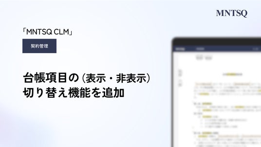MNTSQ株式会社(本社:東京都中央区、代表取締役:板谷 隆平、以下「当社」)は、「MNTSQ契約管理」の各台帳及び台帳横断検索の画面において、列項目を表示・非表示に切り替えられる機能を追加したことをお知らせします。