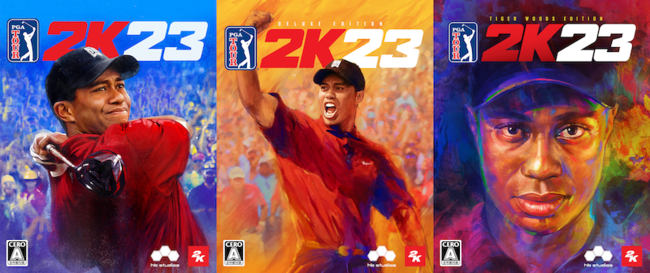 『ゴルフ PGAツアー 2K23』には複数のエディションがあり、それぞれ異なるタイガー・ウッズの肖像画が描かれたカバーアートとなっています。