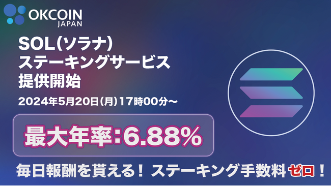 当社は、OKCoinJapan(暗号資産取引所)のステーキングサービスにおいて、『ソラナ(SOL)』を追加することをお知らせいたします。