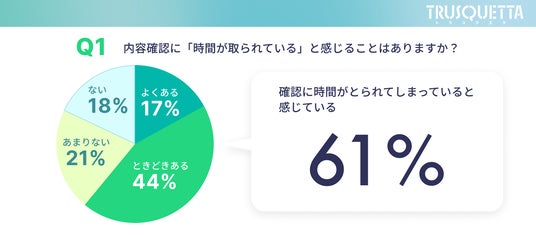 その結果、6割以上が確認作業に時間を取られていると感じていることが明らかになりました。