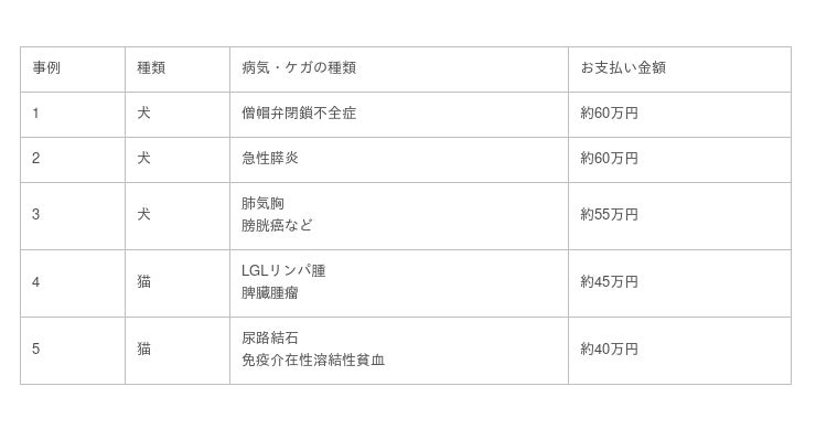 ※上記の数値は、PS保険加入者さまから請求されたものであり、ペットメディカルサポートが補償する範囲を示すものではありません。また、平均や水準を示すものでもありません。