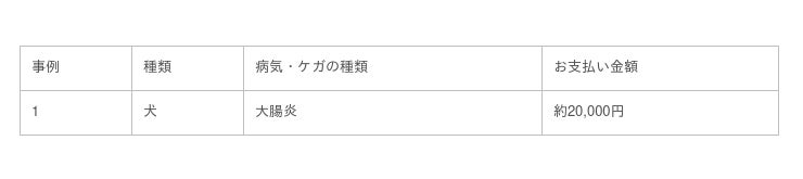 保険金のお支払いは、上記のように高額なものに限りません。次に、平均的なお支払い事例としてペットの大腸炎の診療をご紹介します。