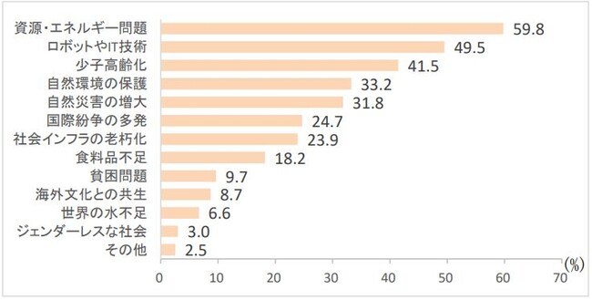 ●持続可能な社会への関心が高い・・・・・「資源・エネルギー問題」への関心59.8%