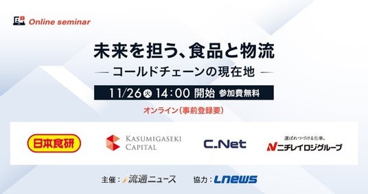 クラウド型倉庫管理システム(以下、WMS)の開発提供を手掛ける株式会社シーネット(以下シーネット、本社:千葉県千葉市、代表取締役社長兼CEO:小野崎伸彦)は、11/26(火)流通ニュース開催のオンラインイベント『未来を担う、食品と物流~コールドチェーンの現在地~』への登壇が決定しましたのでお知らせいたします。本イベントは、食品物流における課題や解決策に焦点を当てた内容で、業界をリードする4社が最新の取り組みを紹介します。