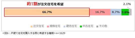戸建て住宅を購入する際に希望する種類を尋ねたところ、「注文住宅を希望する」という人が最も多く66.7%という結果になりました。(図6)