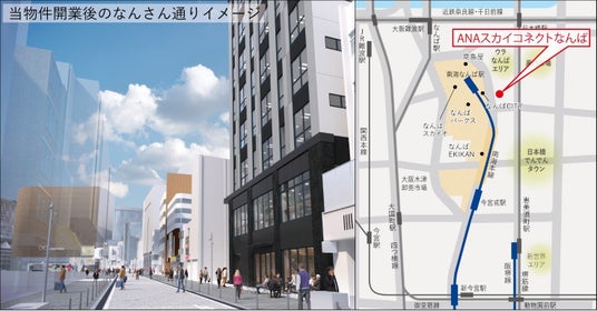 ANAファシリティーズ株式会社(本社:東京都中央区、代表取締役社長:丹治 康夫 以下、「ANAファシリティーズ」)は事業主たる南海電気鉄道株式会社(社長:岡嶋 信行 以下、「南海電鉄」)が、大阪市中央区難波千日前において建設中の「(仮称)難波千日前オフィスビル」をマスターリース(建物一括借り上げ)し、施設名称を「ANAスカイコネクトなんば」として2025年春に開業いたします。