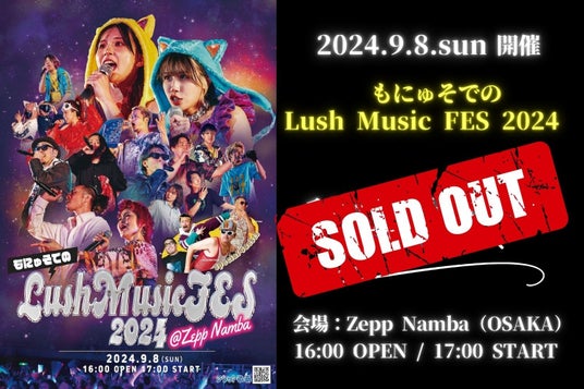 初のZepp公演。「もにゅそでのLush Music Fes 2024」チケット完売! 9/8(日)Zepp Nambaにて開催。お楽しみに!