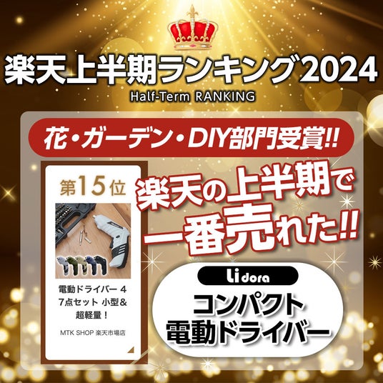 ロングセラー<Lidora コンパクト電動ドライバー>が「楽天上半期ランキング2024/花・ガーデン・DIY部門」受賞!さらに、お買い物マラソン期間中は限定セール開催!7/11(木) 01:59まで。