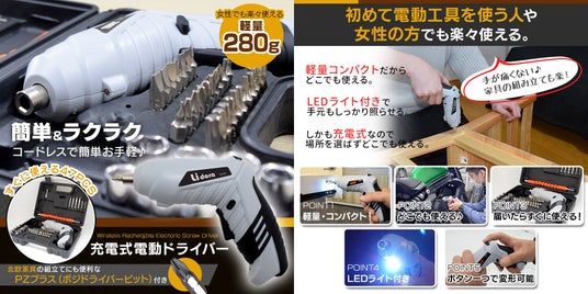 電動ドリル・ドライバードリルランキング、電動工具本体ランキングなどで6冠達成している、ロングセラー人気「Lidora コンパクト電動ドライバー」。