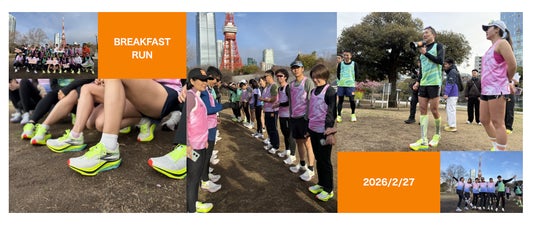 2月27日には、東京マラソン本番前日に「BREAKFAST RUN EVENT」を実施。インフルエンサーおよび市民ランナー約30名が参加し、361°シューズを着用してのグループランを実施しました。