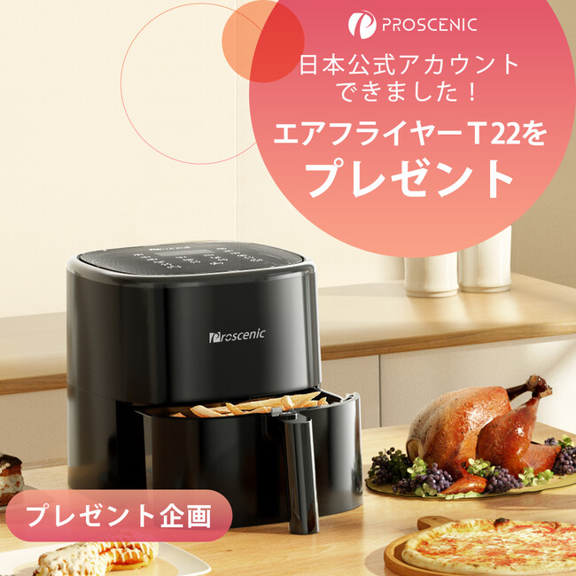 ノンフライヤー、空気清浄機、ロボットやコードレス掃除機などの研究開発、生産、販売を一体化した家庭用家電の総合メーカーであるプロセニック株式会社は、9月7日(水)19:00から9月13日(火)23:59まで約一週間にわたって、Instagramにおいて、人気商品T22ノンフライヤーが無料で抽選に参加できる特別企画を実施致します。