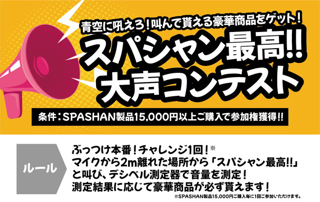 カーケアブランドスパシャン(本社:神戸市東灘区)は7月29(土)・30日(日)、スーパーオートバックス246江田店(神奈川県)にて大人気カーコーティングブランド『SPASHAN』をはじめとした株式会社スーパースポーツコレクションが取り扱い販売を行う製品の無料体験会を開催いたします。2023年新製品はもちろん、話題のファミリーブランド「KATIBA」「it'sWin」「ANGELWAX」などなど!ポリッシャーまで全て無料体験が可能です!!さらに、スパシャン製品を15,000円(税込)以上ご購入いただくと豪華賞品が当たる大声コンテストに参加できる!