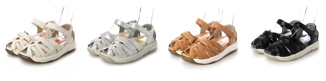5. カラーは汎用性の高いホワイト、シルバー、キャメル、ブラックの4色展開。全てやわらかな本革を使用し、足にやさしい履き心地です。
