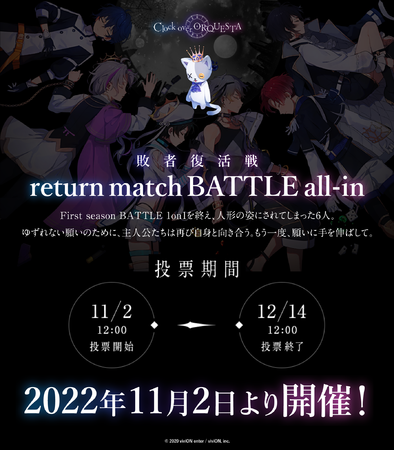 First season BATTLEで敗れた6名による敗者復活戦「return match BATTLE all-in」を2022年11月2日12時~12月14日12時の期間に開催します。