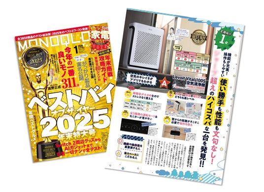 アメリカ発の小型家電メーカーVeSync(ウィーシンク)の日本法人、Vesync Japan株式会社(本社:東京都千代田区、以下VeSync)が展開する空気清浄機ブランド「Levoit(レボイト)」の人気製品「Levoit Vital 100S 空気清浄機」および「Levoit Vital 100S Pet 空気清浄機」が、製品評価誌『MONOQLO』2026年1月号の「空気清浄機(玄関向け)部門」において、「2025年年間総合ベストバイ」に選定されました。