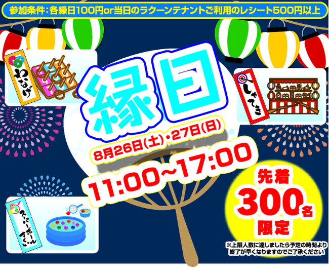 株式会社浜友E.F.(所在:東京都千代田区、代表取締役:大石恵司)が運営する複合型商業施設「南越谷ラクーン」(所在:埼玉県越谷市)では、2023年8月26日(土)~8月27日(日)に夏祭りイベントを開催致します。
