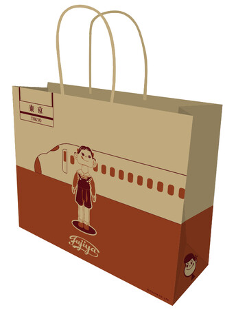 店舗にて、「銀座ペコちゃんカステラ焼き(6個入/12個入)」または「遠征!スマイルスイッチ部!in TOKYO オリジナルランチトート」をお買い上げの方に、「不二家の洋菓子 ペコちゃん×トーキョー」オリジナルデザインのレトロかわいいペコちゃんのショッパーをプレゼントいたします。