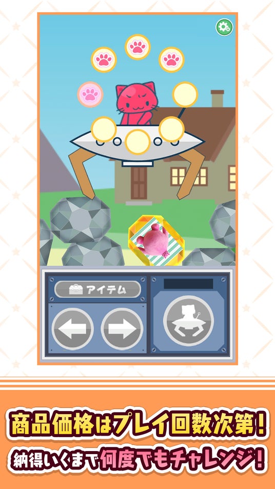 実物のクレーンゲームの筐体を操作するオンラインクレーンゲームとは違う、2D空間でのデジタルなゲームならではの、ゲーム要素を楽しむことができます。
