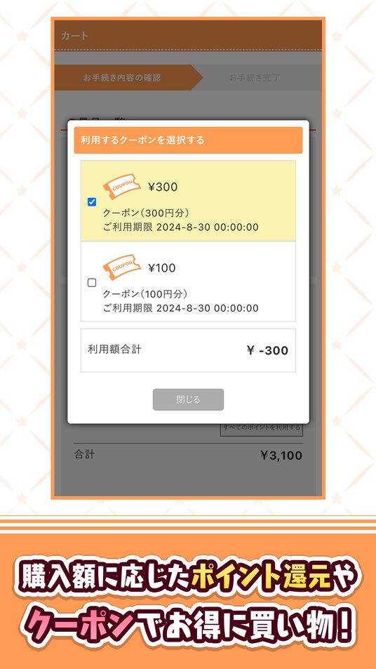 iOS版・Android版のβサービス開始を記念して、期間中は毎日「100円引きクーポン」をプレゼントするキャンペーンを実施します。クーポンは、商品の購入時に使用することができます。