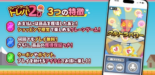 サイバーステップ株式会社は、獲得まで無料で遊べるクレーンゲーム『トレバ2D』のiOS、Android版のβサービスを2024年11月20日(水)13:00より開始したことをお知らせします。