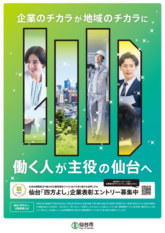 仙台市では、地域の活性化と中小企業の持続的な発展を図るため、地域社会の発展および従業員にとって魅力的な職場環境づくりに取り組む企業を仙台「四方よし」企業として表彰しており、このたび、令和6年度の表彰対象企業の公募を開始しました。