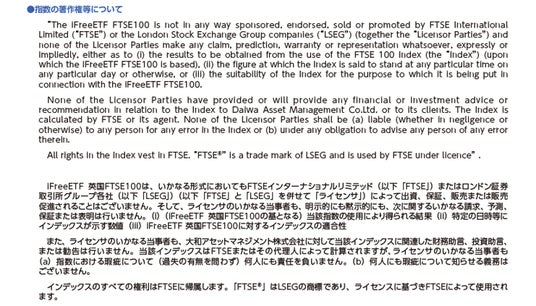当社では、投資家の皆さまの多様なニーズに応えるべく、英国株式に投資するETFを上場することといたしました。今後も投資家の皆さまの資産形成に資する様々な商品を提供してまいりますので、「iFreeETF」をご愛顧賜りますようお願い申し上げます。